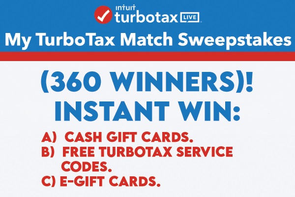 Turbotax Sweepstakes Instant Win Cash Gift Cards Tax Service 360 Winners Sweepstakesbible