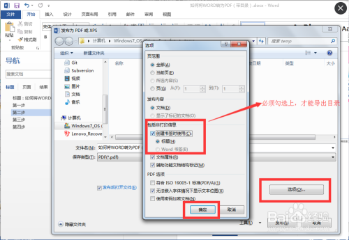 1将做好目录和标题的word文档另存为PDF 在另存PDF时打开PDF选项将创建书签时使用 C前的框打勾然后选择标题点击确定就OK了就可以将word文档的标题创. 在 Mac 上单击创建和共享 Adobe PDF图标然后跳至步骤 4.
